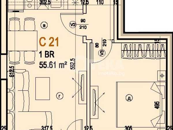 Двустаен апартамент в сграда "БОРИСА 1", с застроена площ от 55м2, на етаж 2, с гледка към двора на комплекса и югоизточно изложение. Високи тавани на 2,70м.
