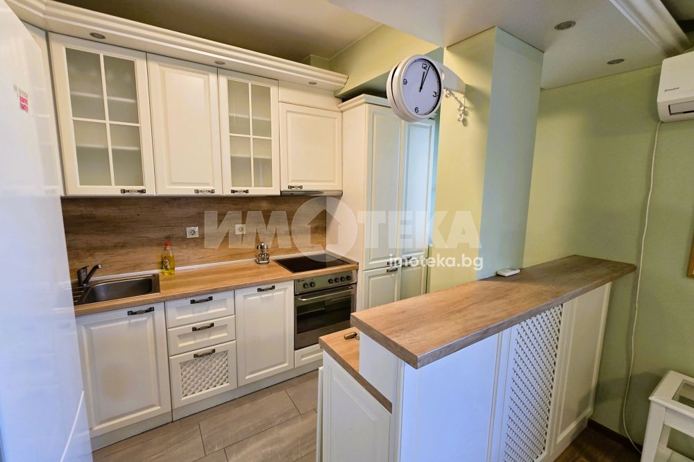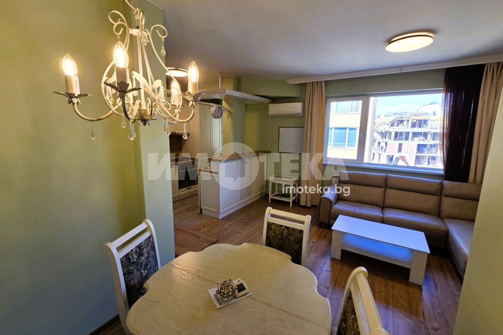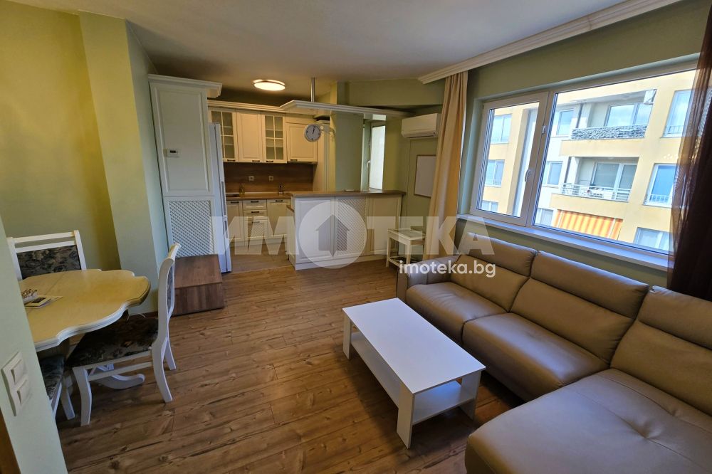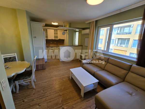 Двустаен апартамент в Манастирски ливади - изток, напълно обзаведен. Състои се от две стаи, дневен тракт с обособена кухненска част, баня с тоалетна, и възможност за наемане на подземно паркомясто допълнително срещу 100 евро. Отоплението е на ГАЗ и климатици.