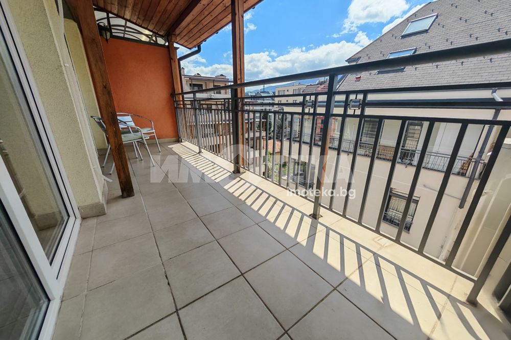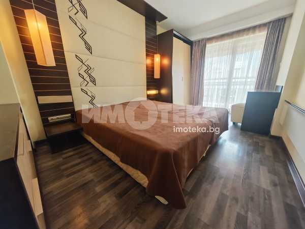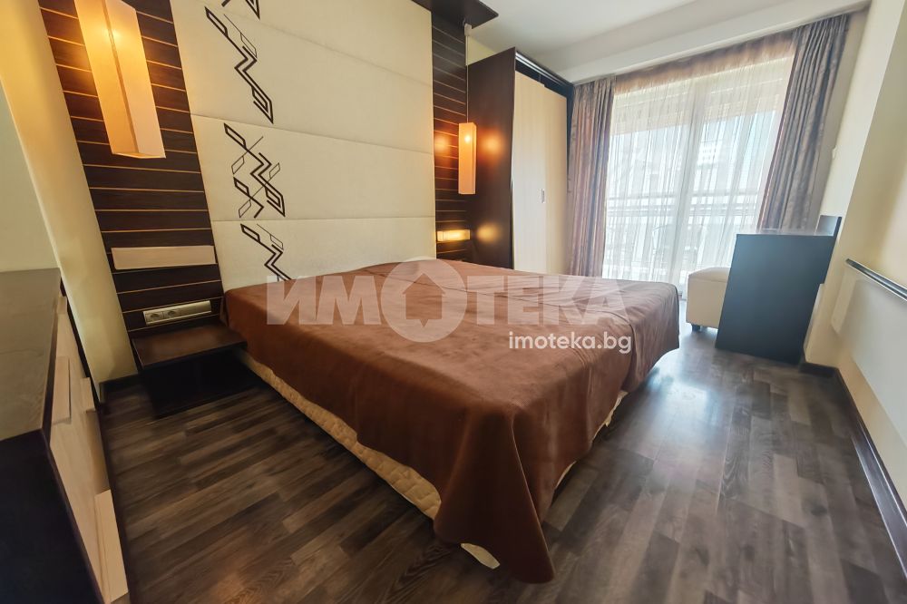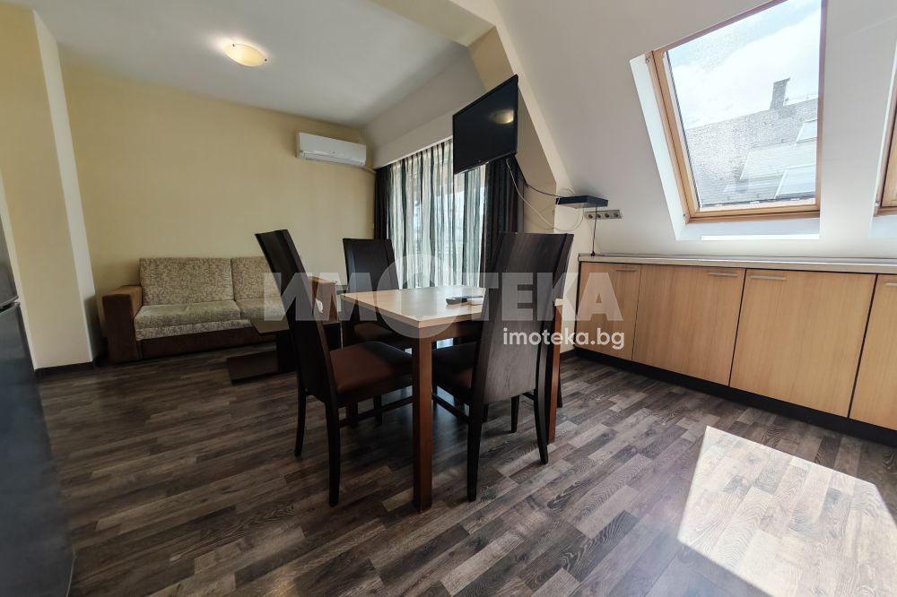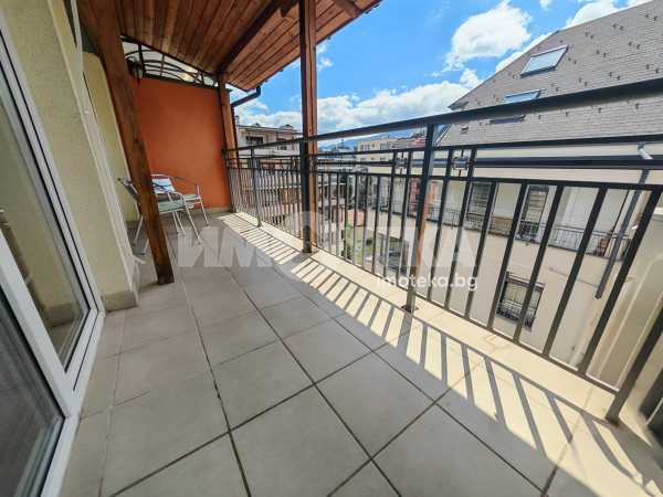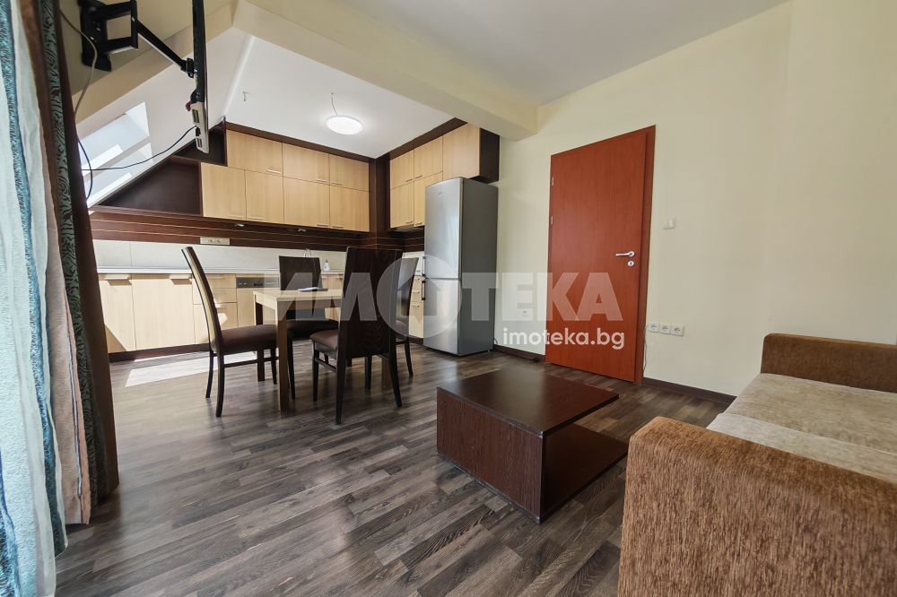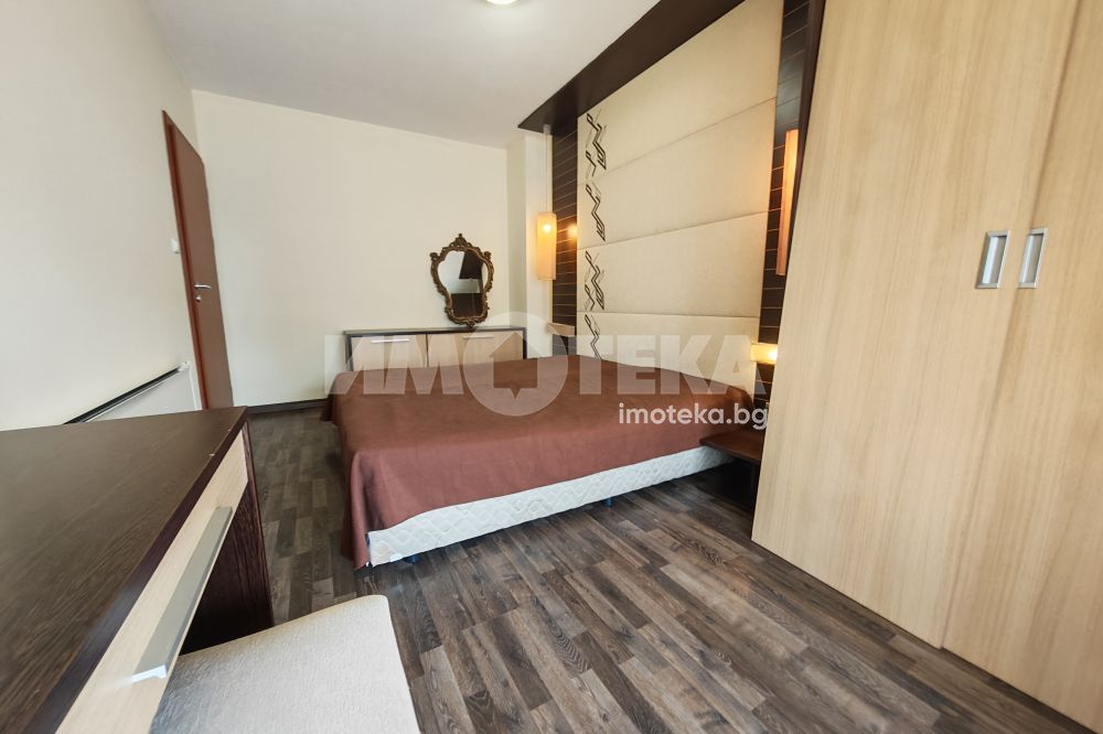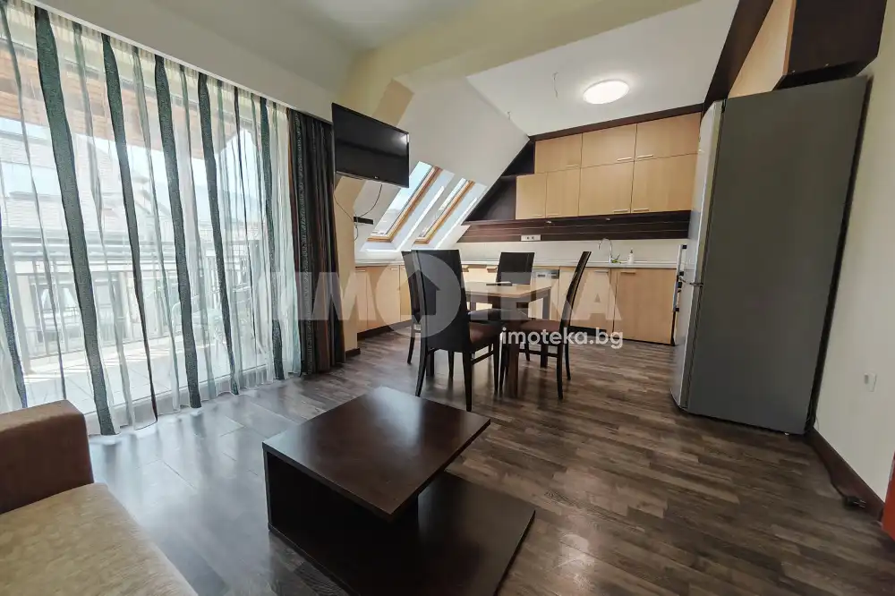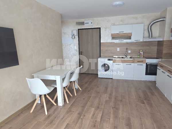 Двустаен обзаведен апартамент до МОЛ България. Състои се от хол с кухненски бокс, спалня, антре, баня с тоалетна и просторна, панорамна тераса.