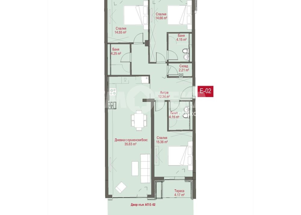 Жилищната сграда се състои от 141 елегантни и функционално проектирани апартамента и 161 гаража и паркоместа.
