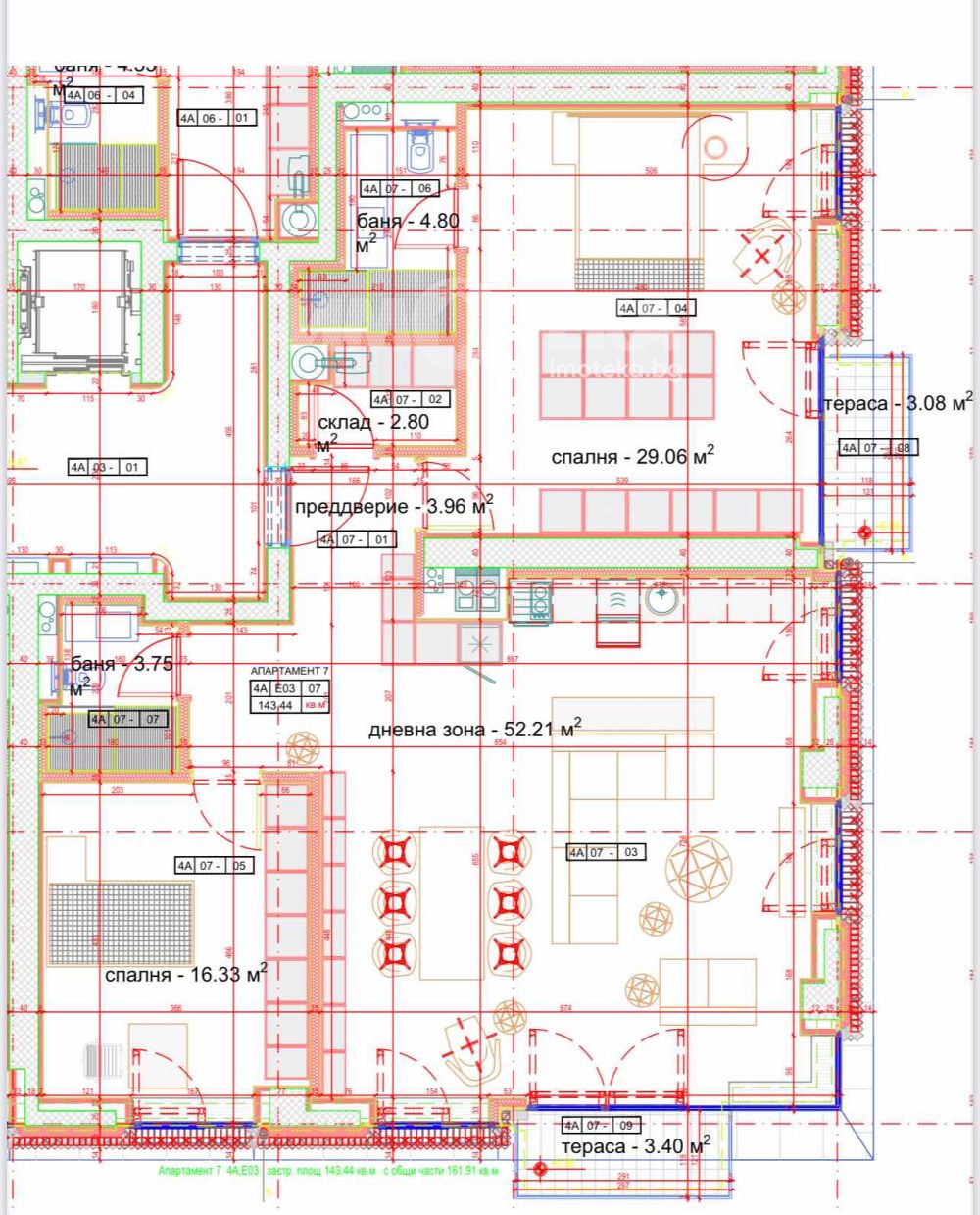 Дневна зона: 52,21 м2