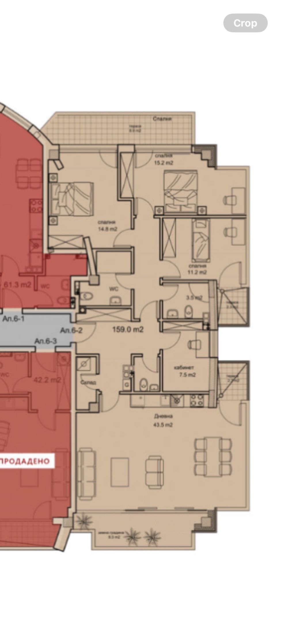 Представяме ви превъзходен многостаен апартамент със застроена площ от 160 кв. м. и с разпределение както следва: просторна дневна зона от 50 кв.м с гледка към Витоша, три спални, кабинет, три тераси, две бани с тоалетна, отделна тоалетна и мокро помещение. Отоплението е предвидено на газ и климатици, с извод във всяка стая.