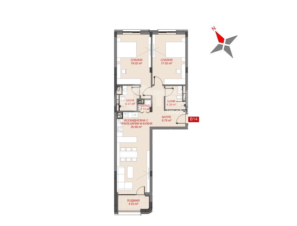 Без комисиона. Тристаен апартамент, състоящ се от: дневна с кухненски бокс, две спални, две бани с тоалетни и две тераси.