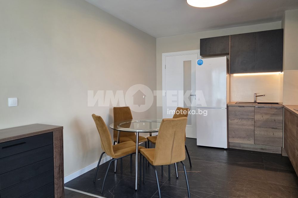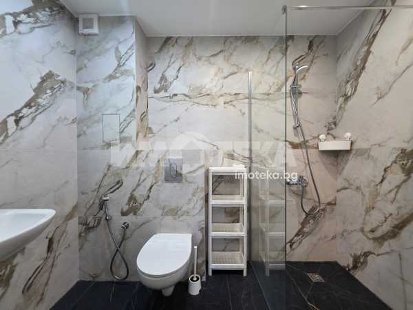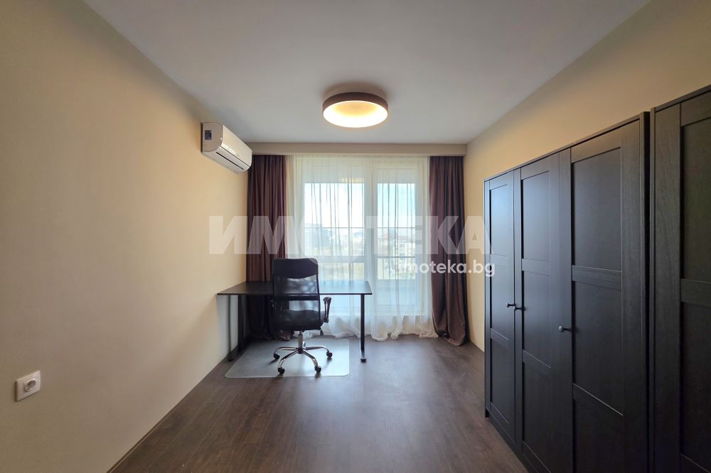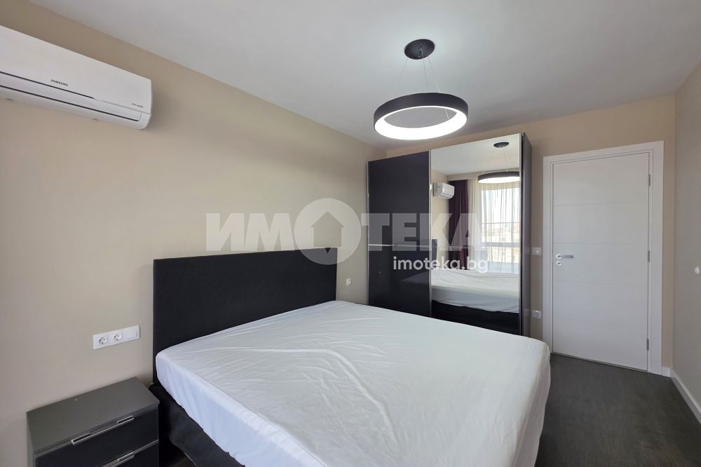 Тристаен апртамент под наем, готов за живеене, на последен етаж. Обзаведен с италианска мебел, подови настилки - ламинат, теракот; алуминиев дограма и отопление на климатици и бойлер. Състои се от просторен хол, голяма тераса, две спални (една от стаите е възможно да се обзаведе по избор на наемателя), една баня с тоалетна и самостоятелна тоалетна.