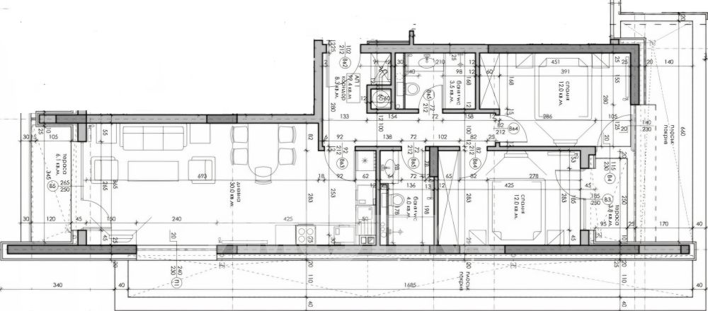 - Диван (хол): 400 см./ 130 см. (комфортна функция)