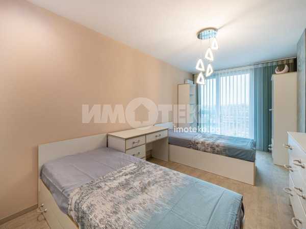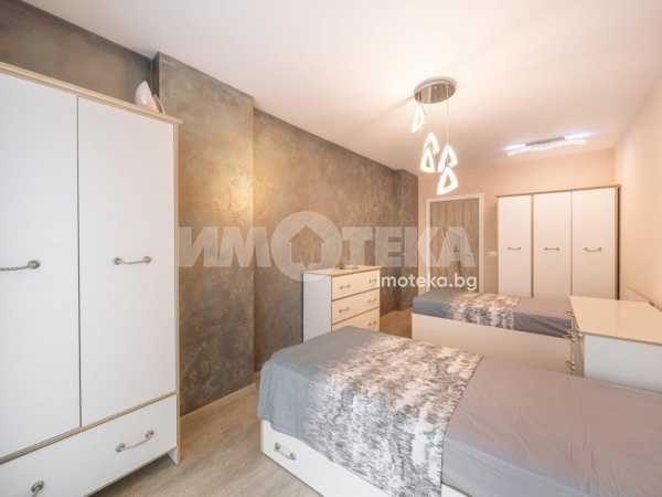 Ново, напълно обзаведено жилище, изпълнено по дизайнерски проект с функционални мебели и вградени уреди от висок клас. Разпределение: широко входно фоайе, просторна дневна с трапезария и кухня оборудвана с всичко необходимо, голяма южна тераса, две спални, баня с тоалетна, втора тоалетна и ниша с пералня и сушилня.