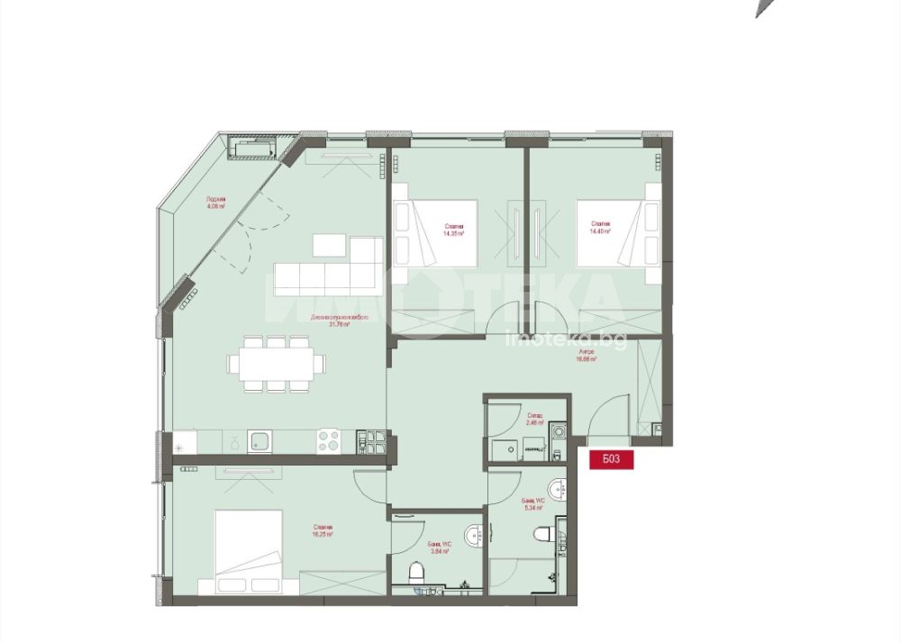 Жилищната сграда се състои от 141 елегантни и функционално проектирани апартамента и 161 гаража и паркоместа.