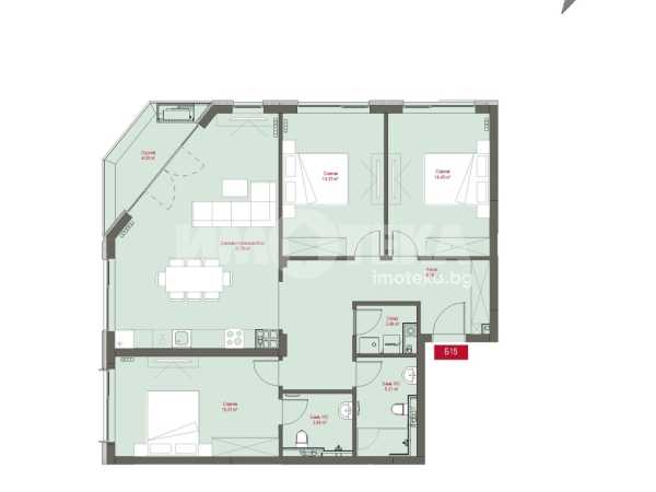 Многостаен апартамент разположен на четвърти етаж. Изложение Югозапад. Застроената площ на жилището е 128 кв.м., разпределени в голямо антре, просторна всекидневна с кухненски бокс и излаз към лоджия, от която се разкрива гледка към Витоша планина, три спални - едната със собствена баня с тоалетна, втора баня с тоалетна, дрешник и склад.
