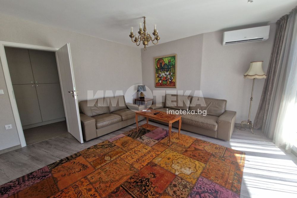 Тристаен апартамент състоящ се от коридор, всекидневна с кухненски бокс, две спални, баня с тоалетна, отделна тоалетна, обзаведен и обурудван готов за живеене, възлизащ на 140 кв.м. от които 40 кв.м. тераса с южно изложение. Възможност за закупуване на надземен гараж 32 кв.м. и паркоместо пред него за 40000€