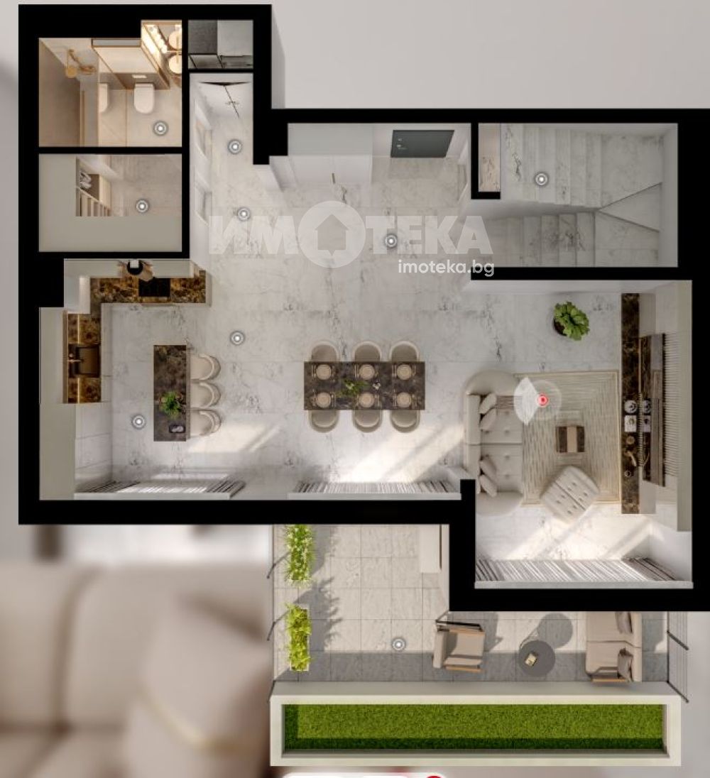 Съвременна архитектурна визия, функционално разпределение на пространствата и минимален дял общи части за максимално ефективна жилищна площ.