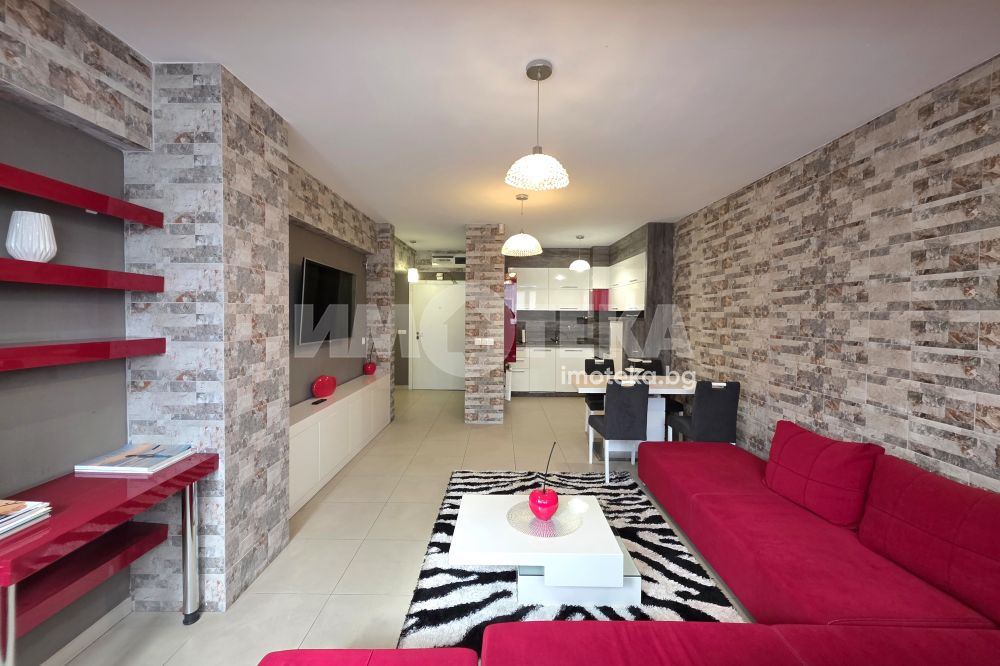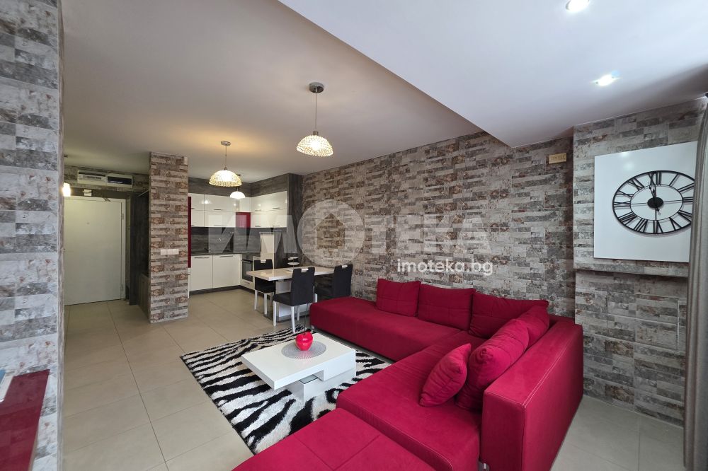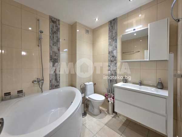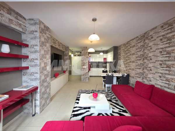 Обзавеждането на жилището е елегантно и с внимание към детайла. Стените са с каменна облицовка, подовете са покрити с гранитогрес, в спалните с естествен дъбов паркет.