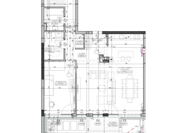 Светъла дневна с кухненски бокс и трапезария, предлагащ удобна и уютна зона за всекидневие.