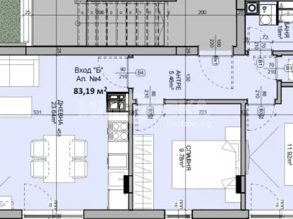 ТРИСТАЕН АПАРТАМЕНТ с площ 83,19м2/ЗП 67,54м2 и прилежащ двор към апартамента 3,08м2. Изложение: изток / юг.