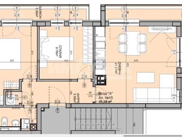 ТРИСТАЕН АПАРТАМЕНТ с площ 95,58м2/ ЗП 78,18м2. Изложение запад/север.