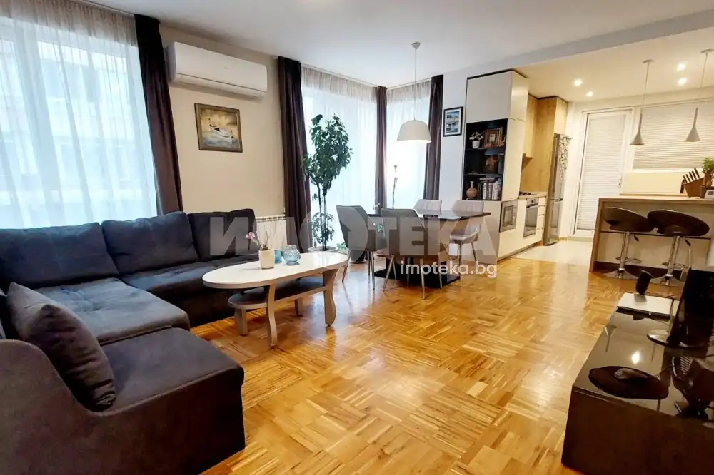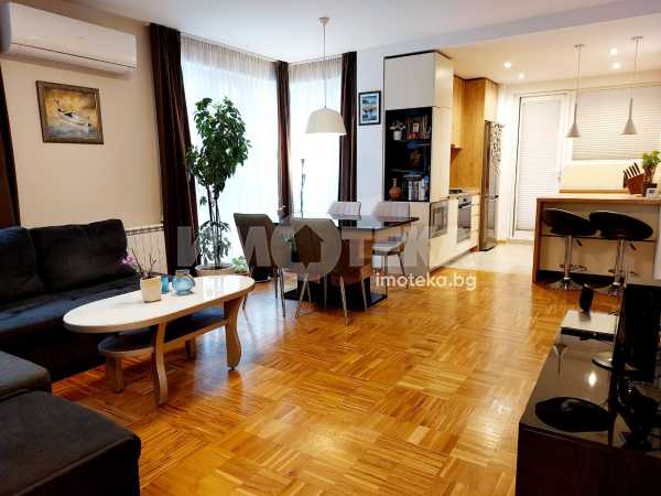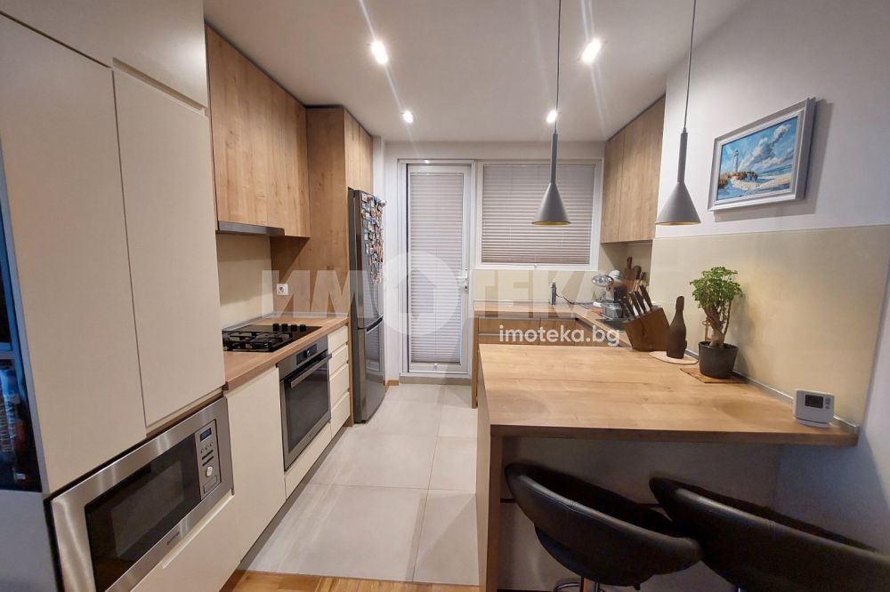 Основен ремонт и обзавеждане на апартамента са направени преди 5 години и е отлично поддръжан. Отоплението е решено отоплителна инасталация на газ, а за горещите дни има монтирани и климатици. Апартаментът се продава с вградените и трайно монтирани мебели и електроуреди.