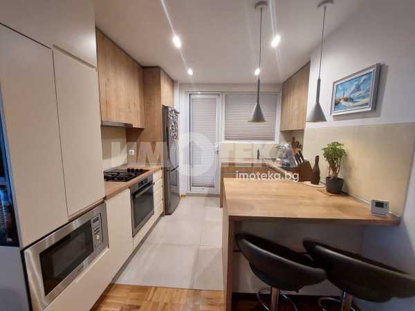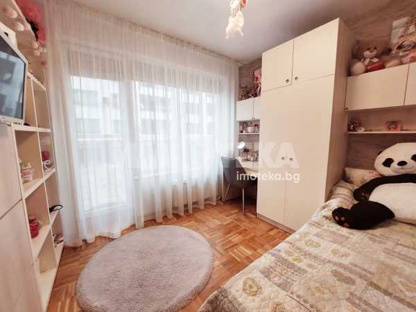 Прекрасен тристаен преустроен на четирстаен апартамент в Манастирски ливади - запад, ул. "Казбек". Апартаментът по документ за собственост е със застроена площ 200 кв.м. Състои се от антре, дневна с кухненски бокс, спалня, 2 детски стаи, баня с WC, отделен санитарен възел, мокро помещение, складово помещение и в тази площ има просторна тераса обикаляща стаите с площ 112кв.м., част от която /21кв.м./ покрита с навес. Основен ремонт и обзавеждане на апартамента са направени преди 5 години и е отлично поддръжан. Отоплението е решено отоплителна инасталация на газ, а за горещите дни има монтирани и климатици. Апартаментът се продава с вградените и трайно монтирани мебели и електроуреди.