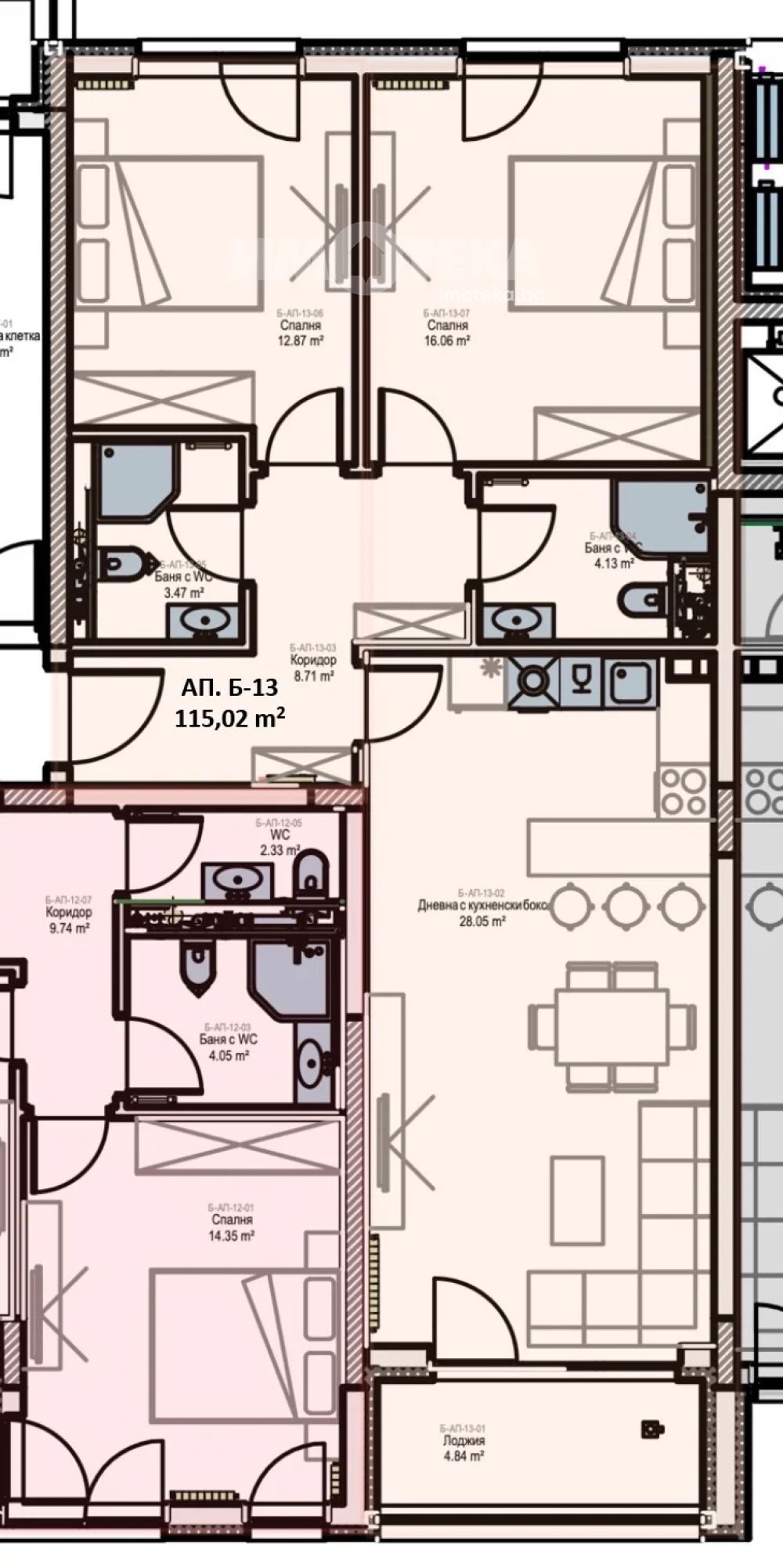 Тристаен апартамент в Младост, състоящ се от антре, две спални, две бани с тоалетни, всекидневна с кухненски бокс и тераса. Възможност за гараж или паркомясто.