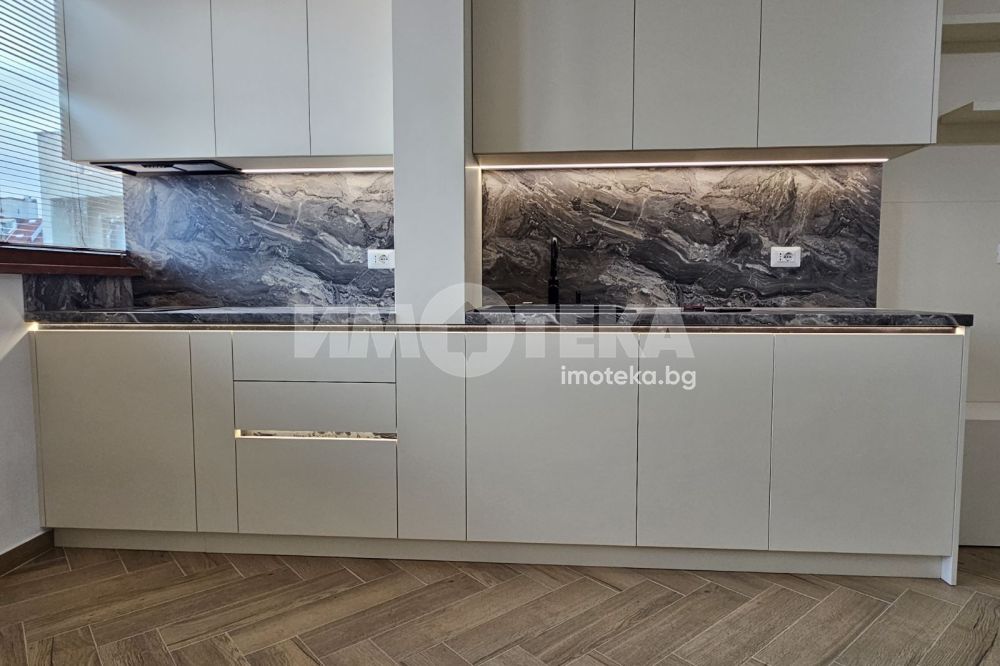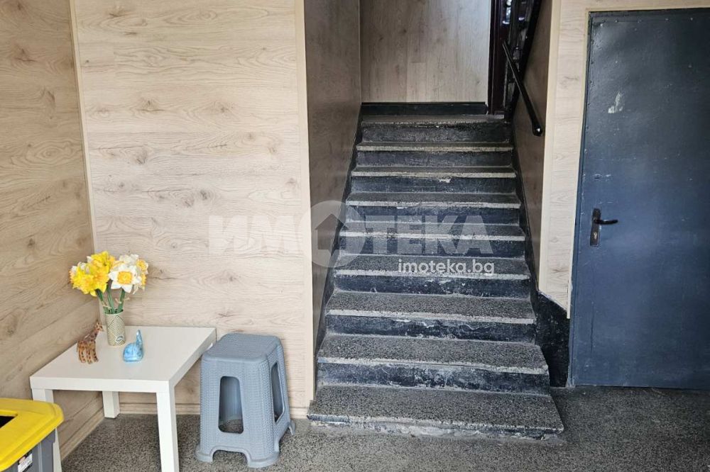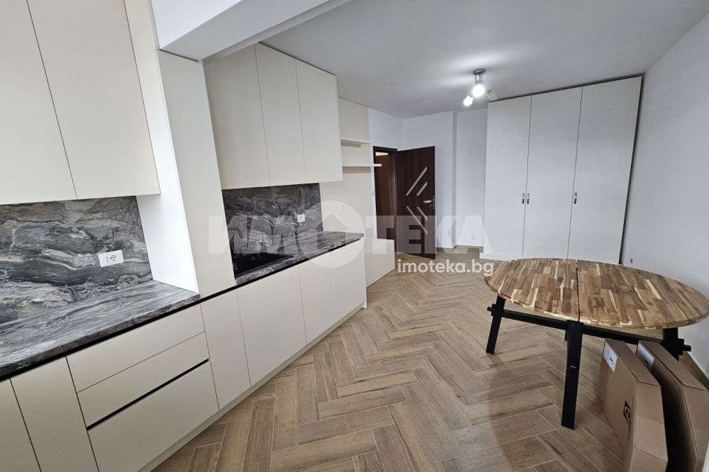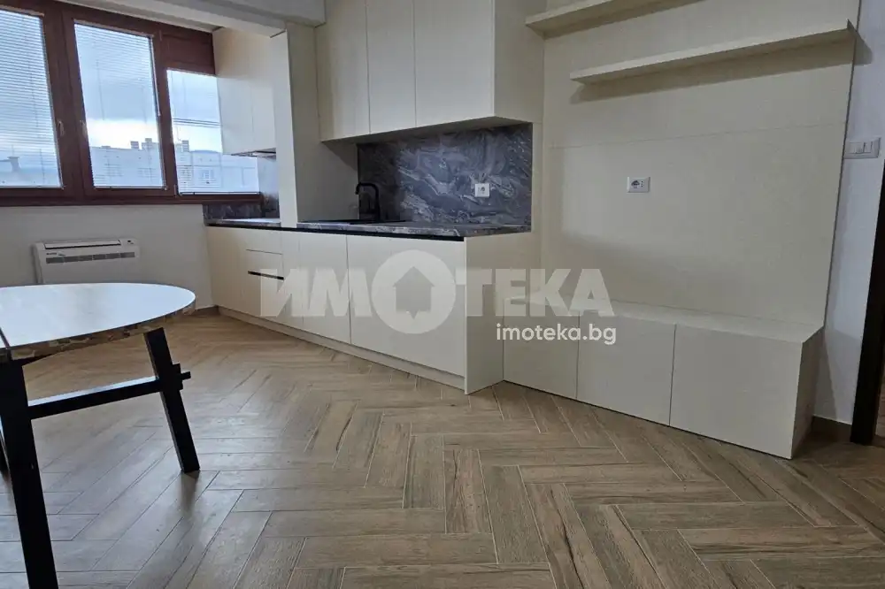 Двустаен апартамент, преустроен от гарсониера. Състой се от входно антре, дрешник+мокро помещение, дневна с кухненски бокс, спалня и баня с тоалетна. Апартамента е след основен качествен ремонт и не е използван. Нови електроуреди, сменена дограма с троен стъклопакет, нова ел. инсталация.