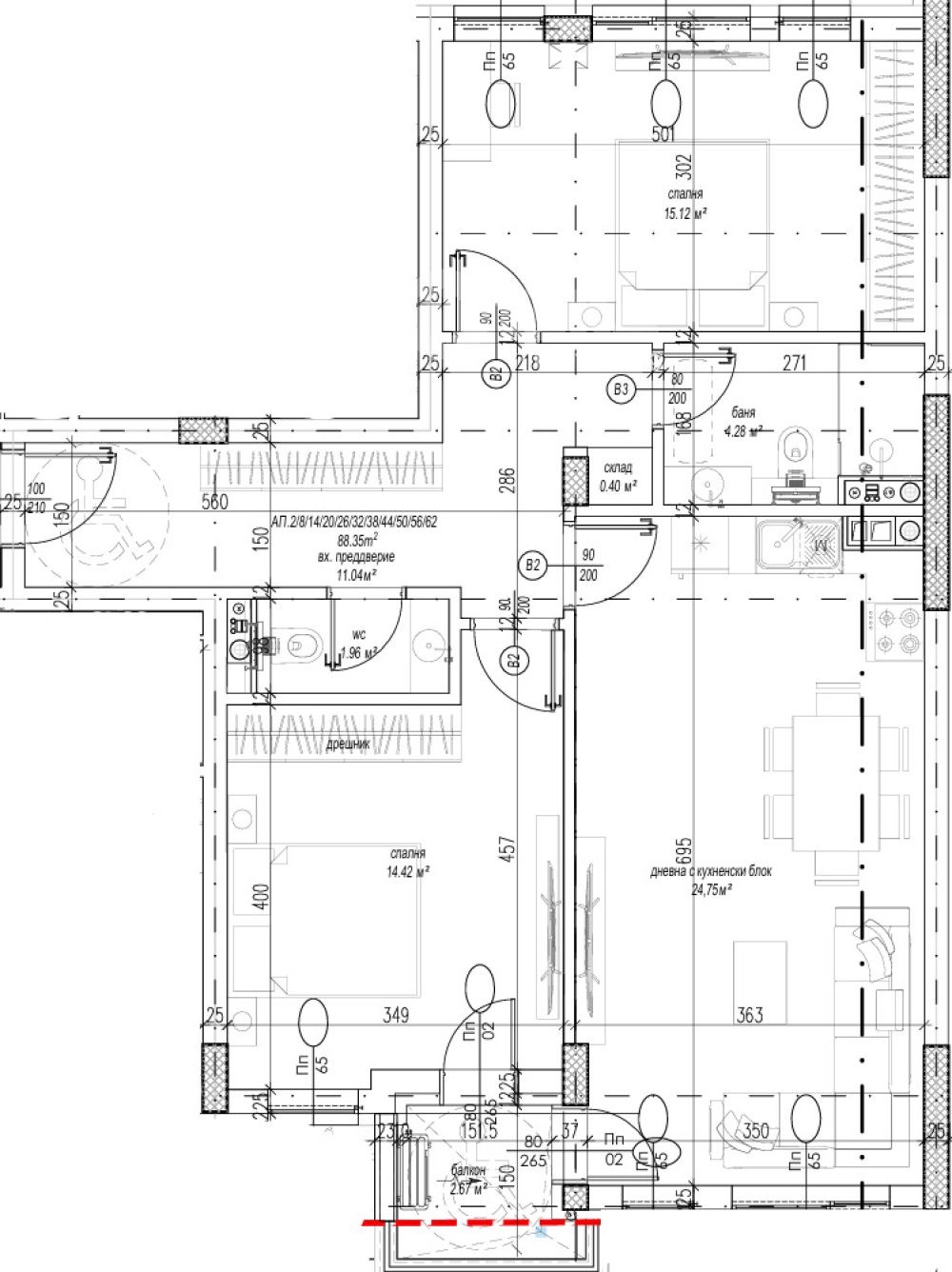 Схема на плащане 30% на Предварителен договор и 70% на АКТ16 /Разрешение за ползване/. За улеснение се прилага схема на имота! Възможност за закупуване на подземно паркомясто!