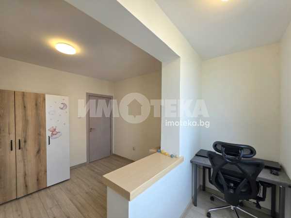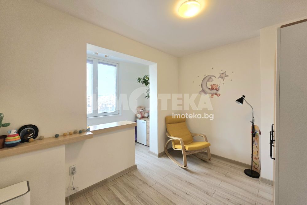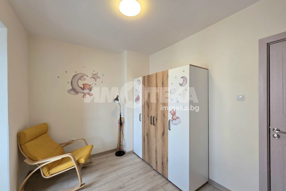 Жилището разполага с родителска спалня, детска стая, хол с кухненски бокс и трапезария. Бившата кухня е умело трансформирана в уютна детска спалня. Пространствата са добре организирани, практични и създават усещане за комфорт и домашен уют.