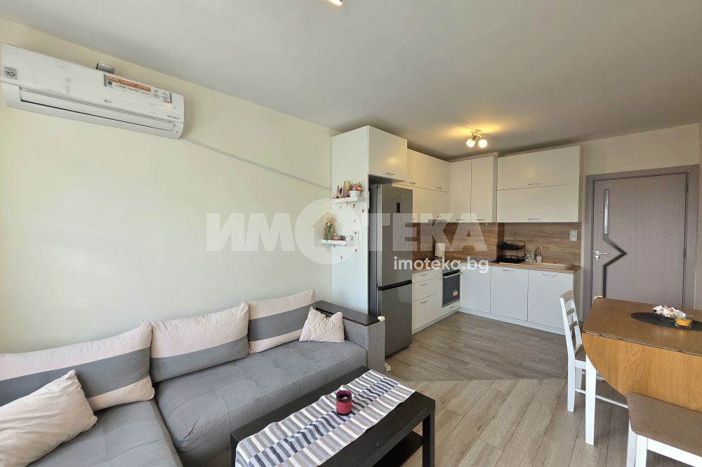 Апартаментът е с изложение изток–запад, което осигурява естествена светлина през целия ден.