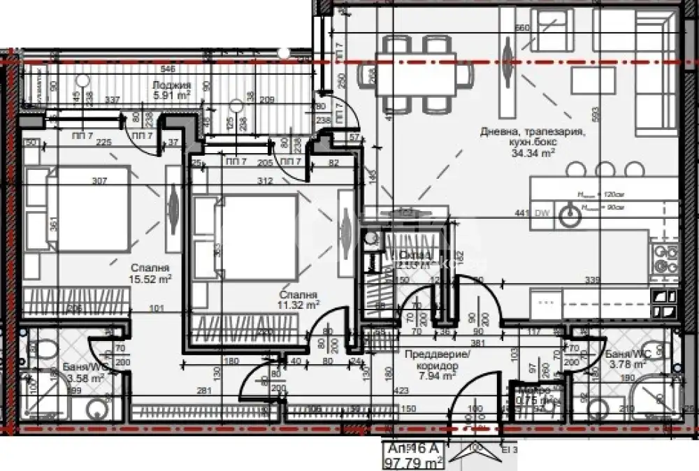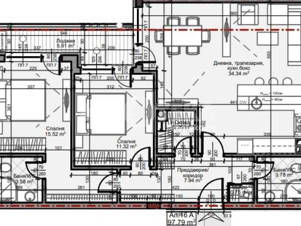 Функционален тристаен апартаментвече с АКТ 14. Разположен е на втори етаж. Състои се от: хол с трапезария и кухненски бокс с площ 34.34 кв.м., две спални по 15.52 кв.м. и 11.32 кв.м., две санитарни помещения, балкон и склад. Изложението е северно. Има възможност за покупка на гараж или паркомясто.