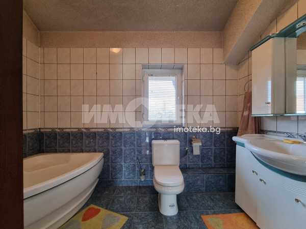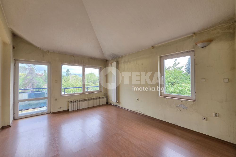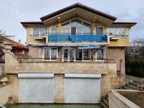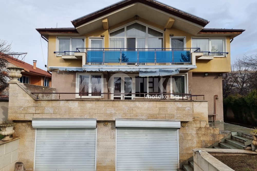 Страхотна еднофамилна къща в жк. Надежда 1. Къщата е с площ на парцела от 992 кв.м. и разгъната застроена площ от 421кв.м. разпределени както следва : сутерен с два двойни гаража, сервизно помещение и два склада със застроена площ от 146кв.м.; първи етаж : коридор, баня с тоалетна, голяма всекидневна с мека мебел и отделен кухненски бокс, една спалня и една голяма тераса със застроена площ от 147 кв.м. и втори етаж : три спални, две бани с тоалетни, една просторна тераса с прекрасна панорама със застроена площ от 128кв.м. Отопление - котел на ток ,като всички уреди,включително и телата са на Rocca + климатици в повечето стаи . Къщата е в много добро състояние, за освежителен ремонт, дворът е чудесен , равен без никаква денивилация. В двора има прилежащи три допълнителни сгради : барбекю, фитнес зона и зона за охрана.