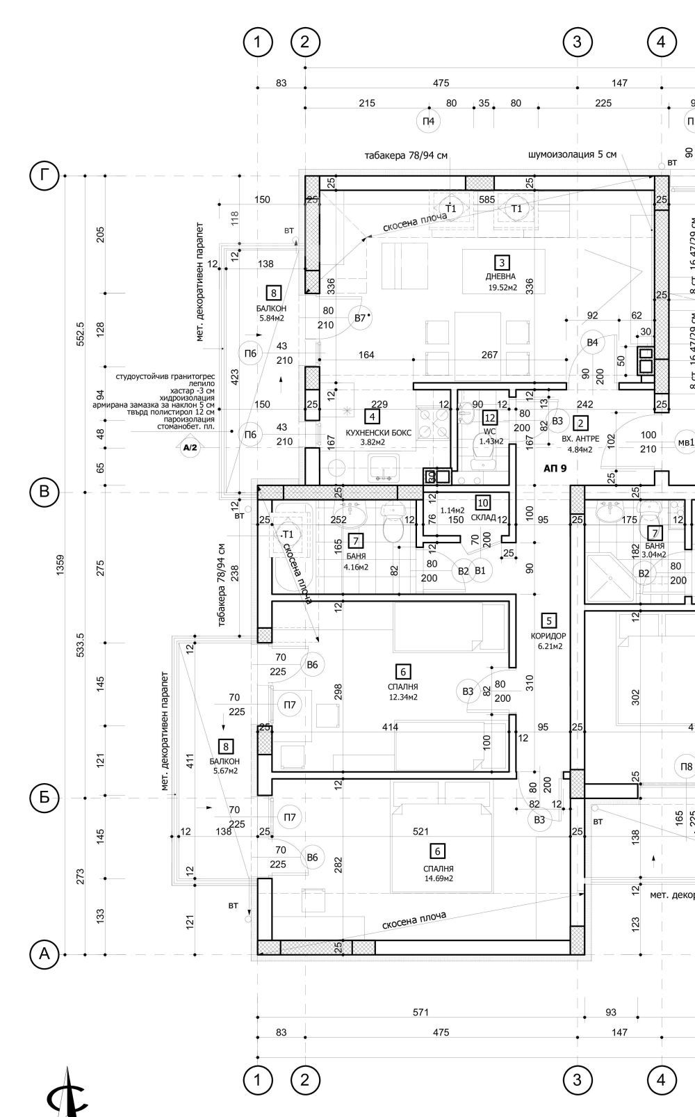 Тристаен апартамент със застроена площ от 93,87кв.м. (106,75 кв.м. с