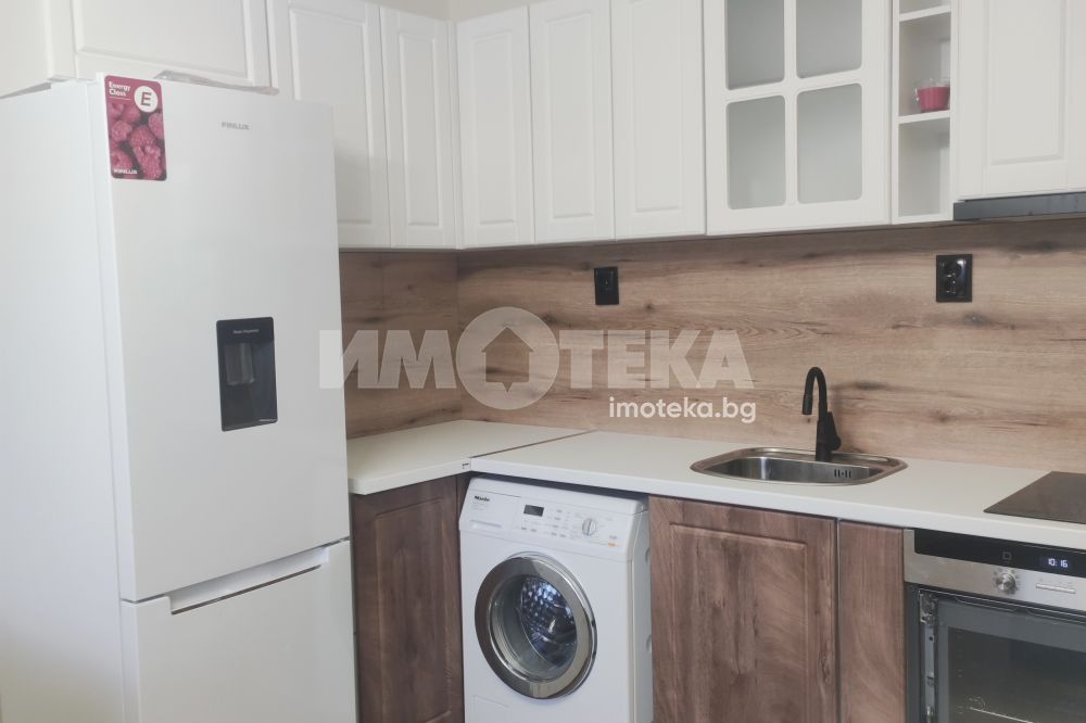 Тристаен апартамент състоящ се от дневна с кухненски бокс, детска стая, родителска спалня, баня с WC, тераса. Жилището е след основен ремонт  с нова бяла техника, чисто и уютно с прекрасна тераса от която се откроява гледка към Витоша. Към имота има бонус помещение 10 кв.м /предверие/, което се намира пред апартамента. Домашен любимец е добре дошъл..
