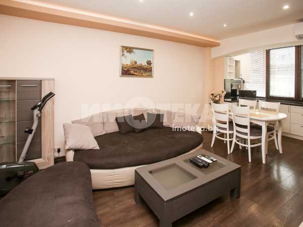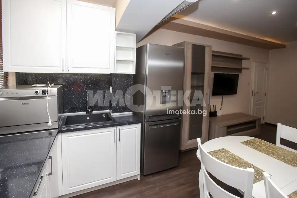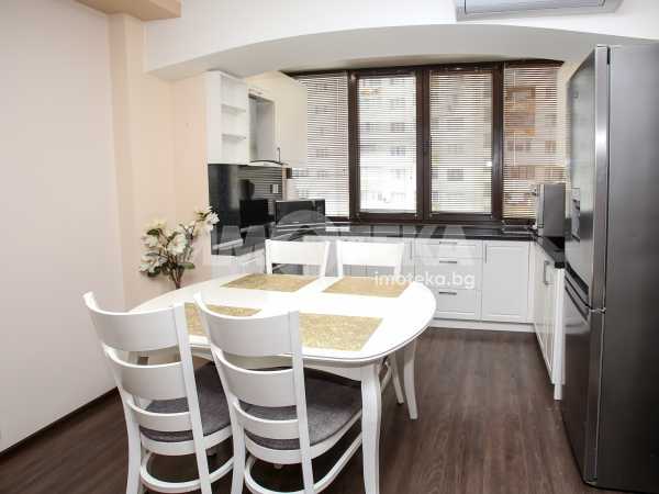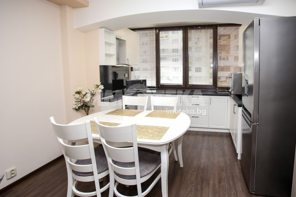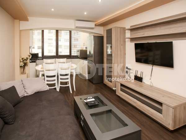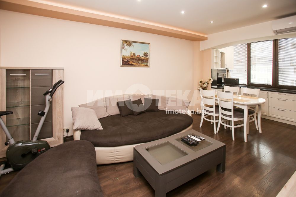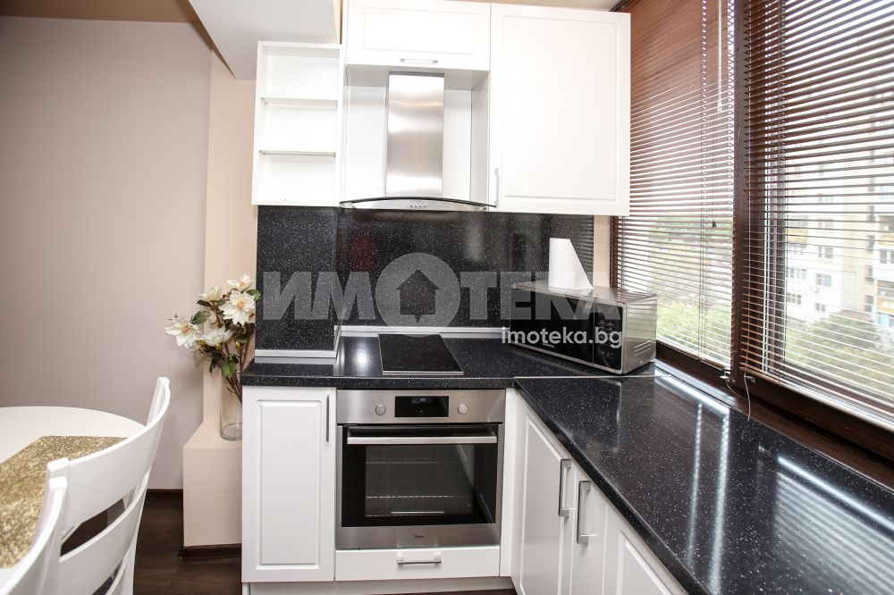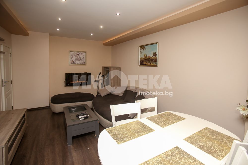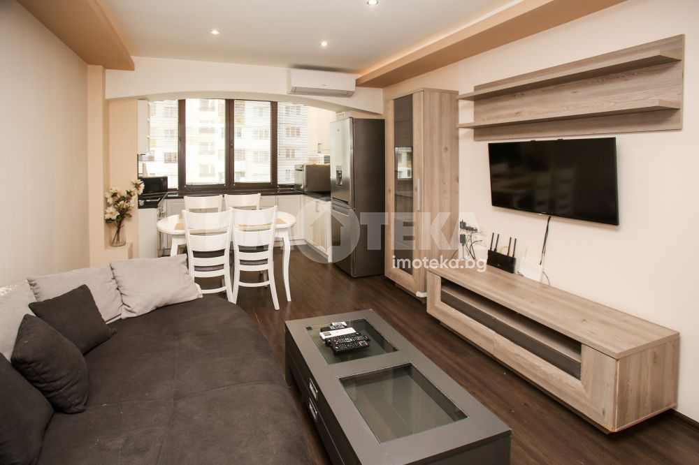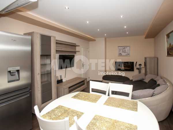 Двустаен апартамент преустроен на тристаен. Отлично състояние, напълно обзаведен , готов за нанасяне. Жилището разполага с антре с вграден гардероб, дневна с усвоена тераса и напълно оборудвана кухня, две спални, санитарен възел и тераса. Изцяло Южно изложение, среден апартамент и мазе 4,10 кв.м..