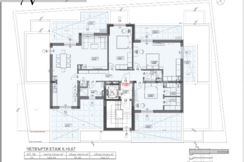 Двустаен апартамент с правилни форми , РЗП 72 кв.м.тераса 15 кв.м., състоящ се от една спалня 11 кв.м., хол с кухненски бокс 26 кв.м. , баня и тоалетна , склад.