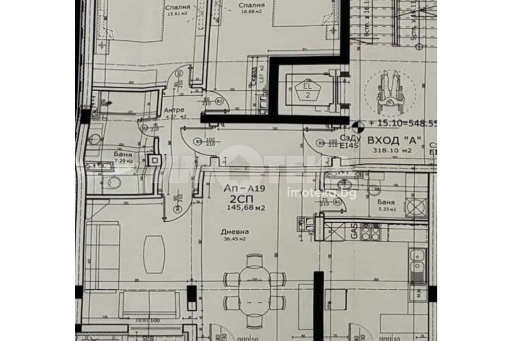 Просторно жилище с площ от 145м2, което може да се ползва като функционален 4-стаен или много голям 3-стаен имот. От южната дневна се излиза на прекрасна тераса. Жилището разполага с 2 оборудвани бани с wc. Сградата е с Акт 16.