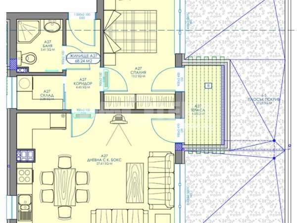 Две спални, хол с кухненски бокс, към който е усвоена тераса, баня с тоалетна, антре и тераса. Сменена входна врата, жилището е подготвено за ремонт и изчистено от мебелировка.