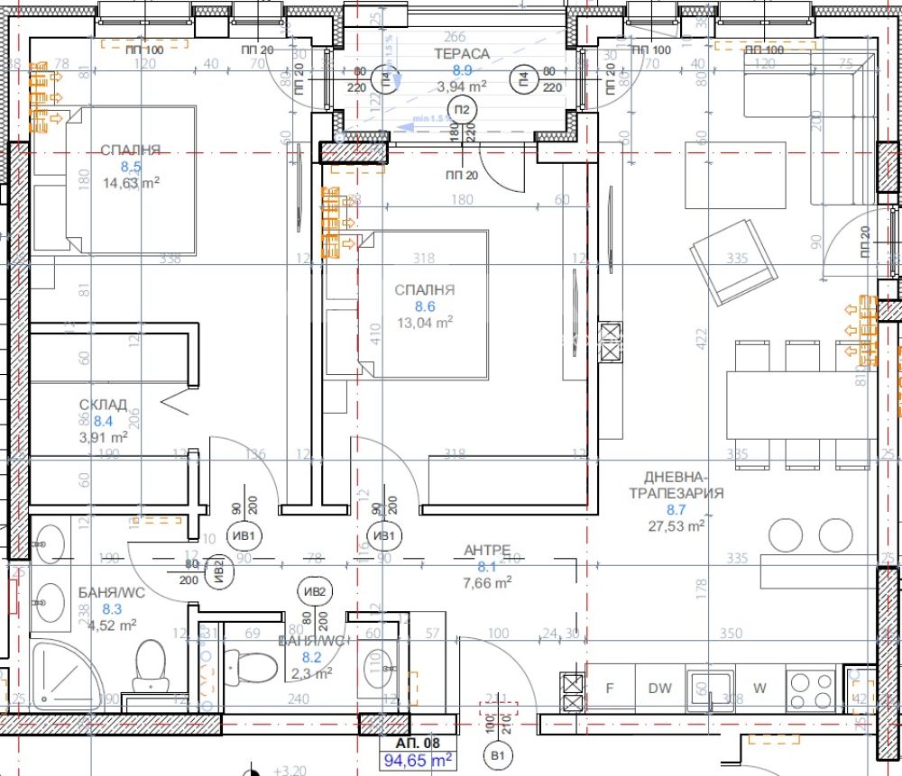Нова сграда с АКТ 16. Завършен апартамент. 10мин от метростанция. В близост до хранителни магазини, училище и детска градина. Опция за паркомясто или гараж на цени от 25000EUR.