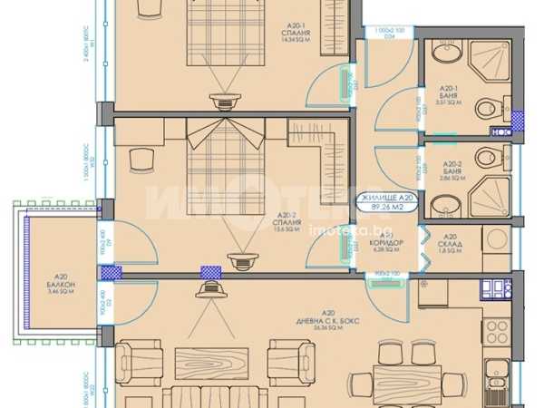 Над партерното ниво са разположени 5 изцяло жилищни етажа с общо 59 светли и функционално разпределени апартамента.