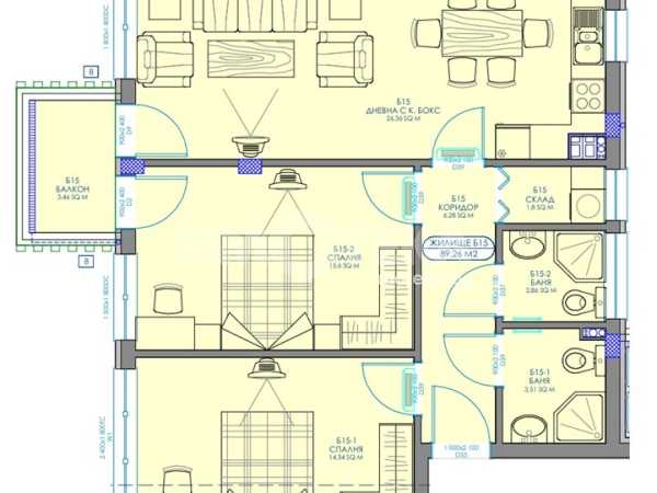 Над партерното ниво са разположени 5 изцяло жилищни етажа с общо 59 светли и функционално разпределени апартамента.