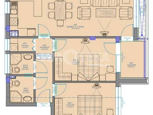 Над партерното ниво са разположени 5 изцяло жилищни етажа с общо 59 светли и функционално разпределени апартамента.