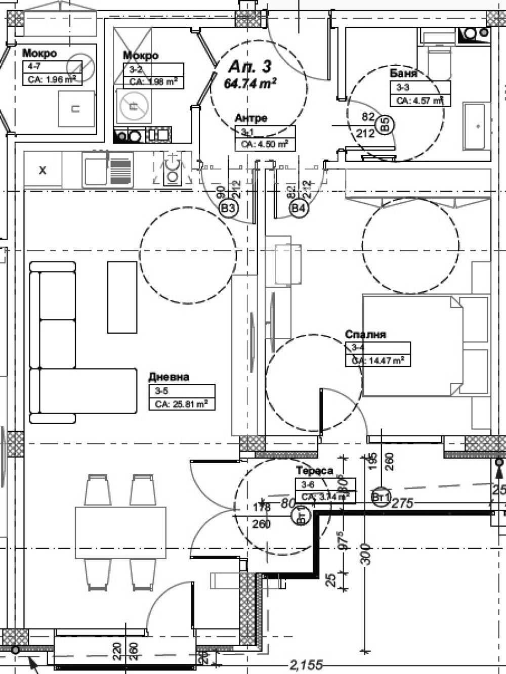 Двустаен непреходен апаратемент, находящ се в един от най-атрактивните квартали на София - Оборище. Състои се от: входно антре с възмжност за портманто и с мокро помещение, баня с тоалетна, дневна с кухненски бокс и тераса, спалня.