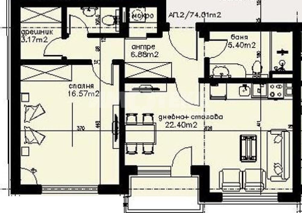 Жилищата са с 1 и 2 спални, просторни помещения и предпочитани изложения. На всеки етаж са разположени по 3 имота.
