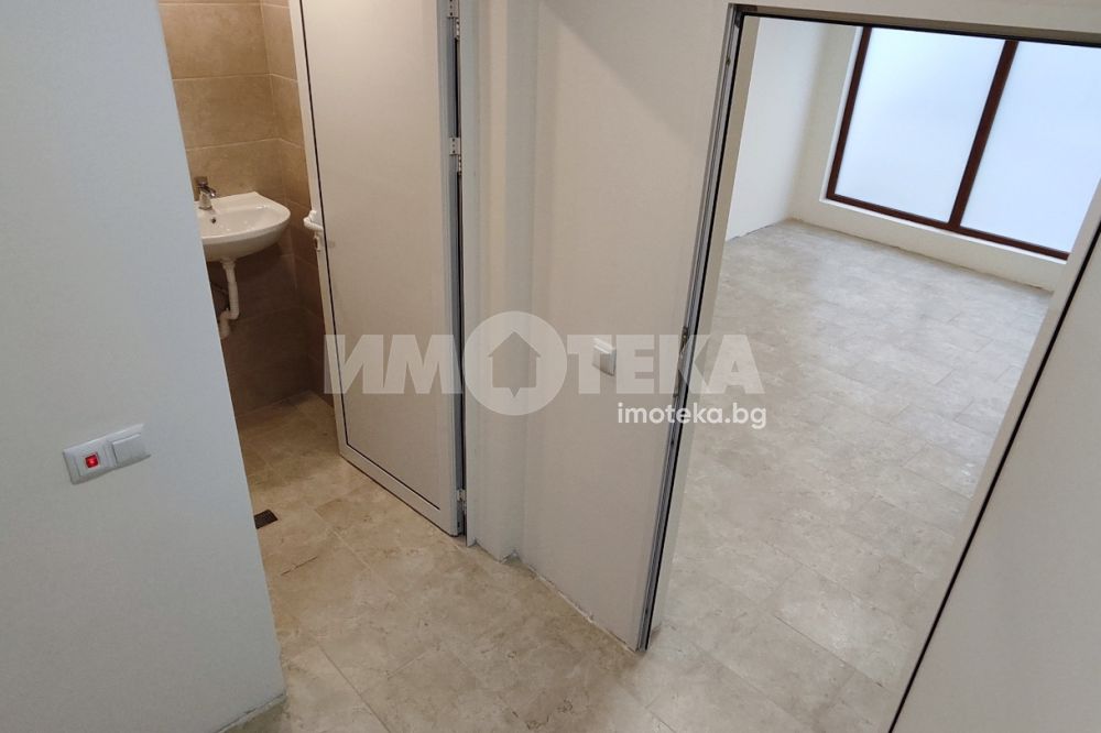 Офис в чисто нова сграда! 155 кв.м. функционално разпределени в две преходни помещения, като архитектурата на имота позволява и лесни преустройства според нуждите и изискванията на новия собственик. Офисът също така разполага и с два санитарни възела и две тераси - тип английски двор. Помещенията са просторни, светли и с правилна форма. В отлично състояние, готов до ключ с изцяло завършени санитарни помещения.
