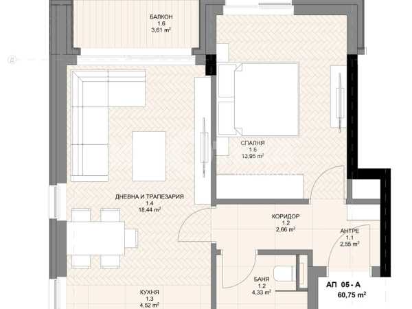 Концепцията на сградата е ориентирана към комфорта и уюта, като предлага разнообразие от апартаменти – двустайни, тристайни и многостайни апартаменти, както и уникални мезонети с двойна височина на таваните.