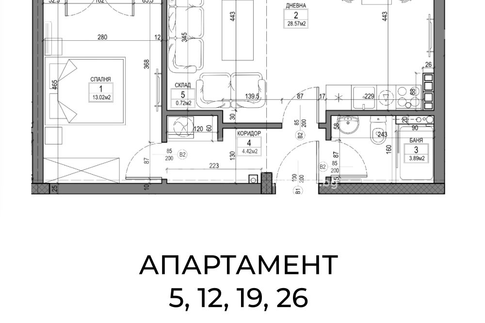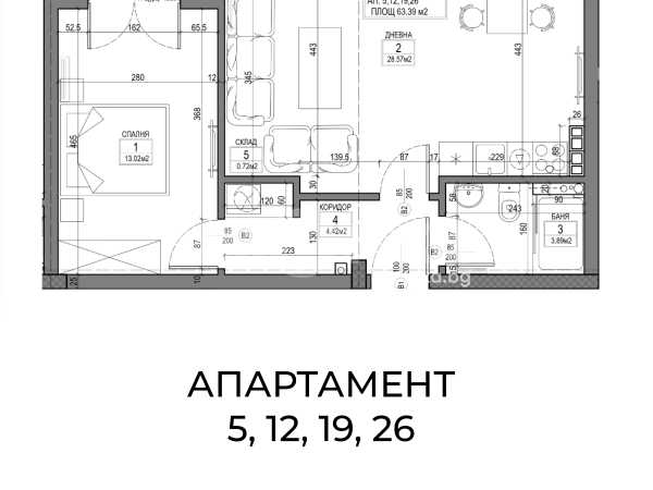 Предлагаме за продажба прекрасен двустаен апартамент със ЗП 63,39 кв.м. и разпределение както следва: всекидневна с кухненски бокс, просторна спалня, склад, коридор и баня с тоалетна. С/З изложение.