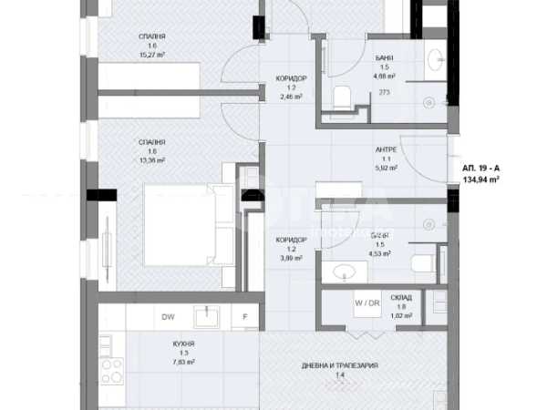 Многостаен апартамент със следното разпределение: коридор, дневна с кухненски бокс, три спални , две бани с тоалетна и две тераси.