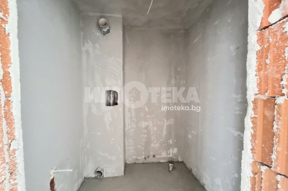 Тристаен апартамента със застроена площ от 87,39 кв.м. Разпределение: антре, дневна с кухненски бокс 22,70 кв.м, две спални (18,33 кв.м и 8,20 кв.м), тераса с площ 14,56 кв.м и баня с тоалетна.