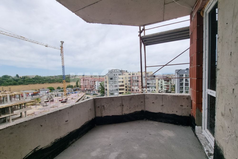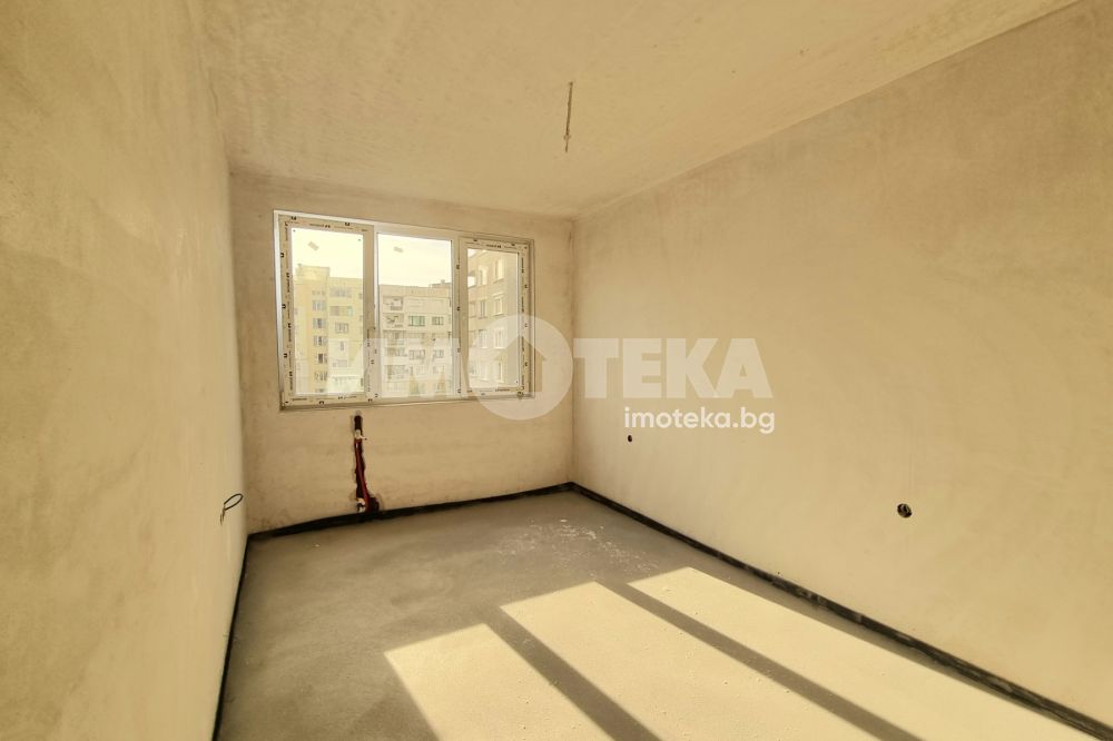 Тристаен апартамента със застроена площ от 84,76 кв.м. Разпределение: антре, дневна с кухненски бокс 23,69 кв.м, две спални (17,20 кв.м и 11,31 кв.м), тераса, баня с тоалетна и тоалетна.