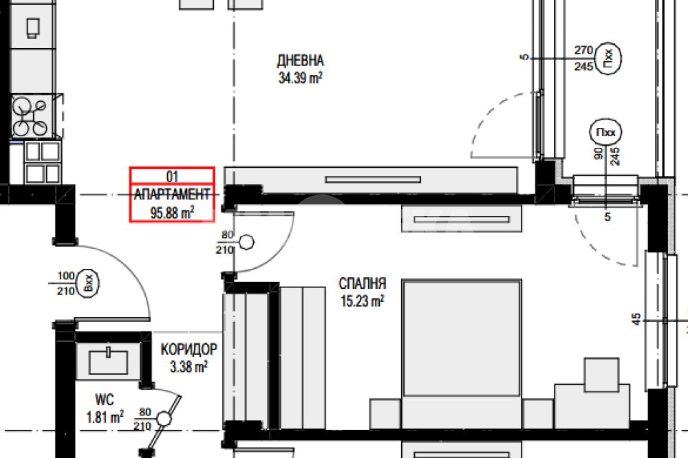 бокс, две спални, тераса, баня с тоалетна и