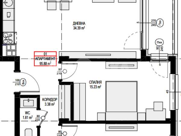 Просторен тристаен апартамент, с източно изложение състоящ се от: