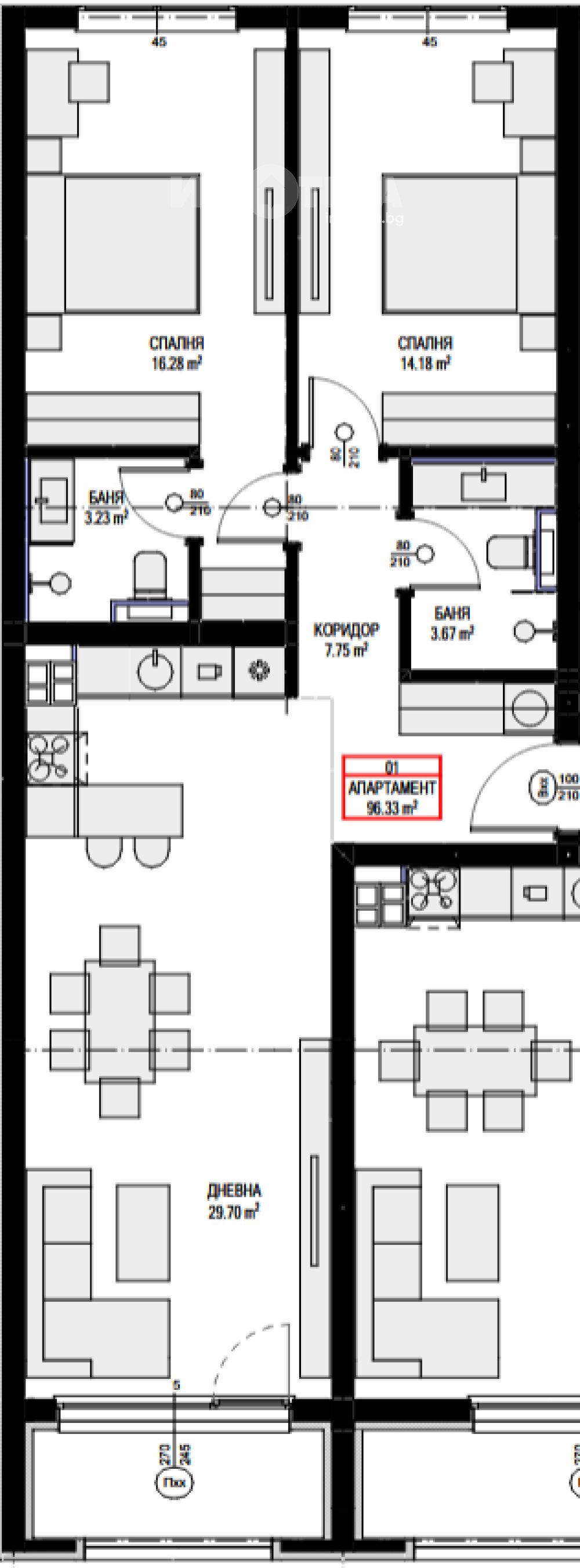 Просторен тристаен апартамент, на две изложения състоящ се от: