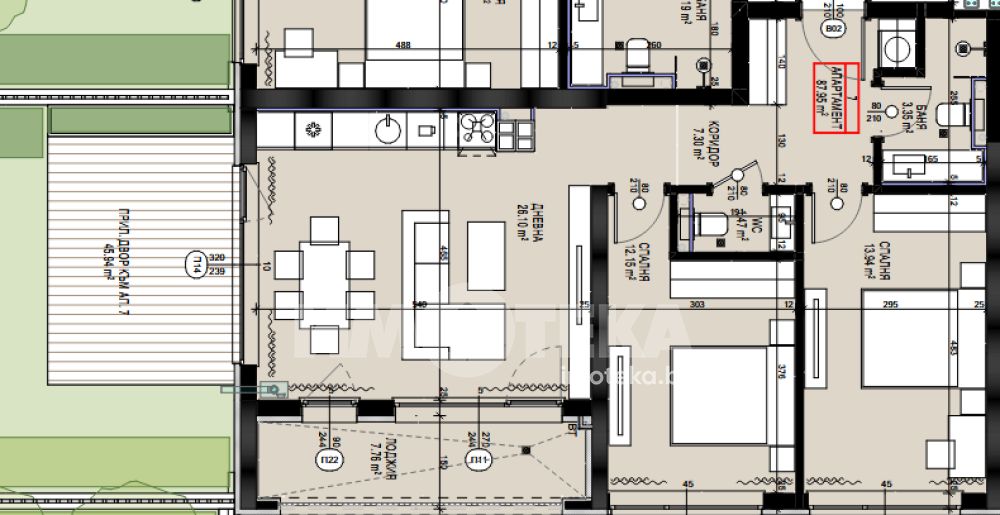 отделна тоалетна. Към апартамента има прилежащ двор.