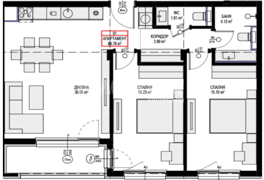 входно антре, дневна с трапезария и кухненски